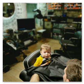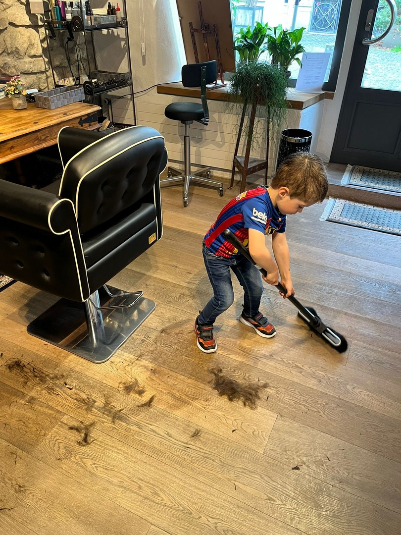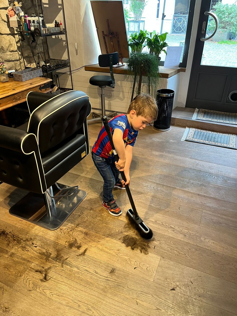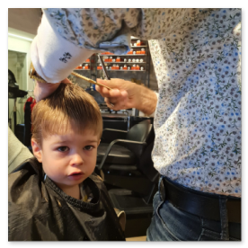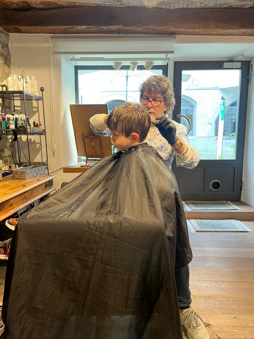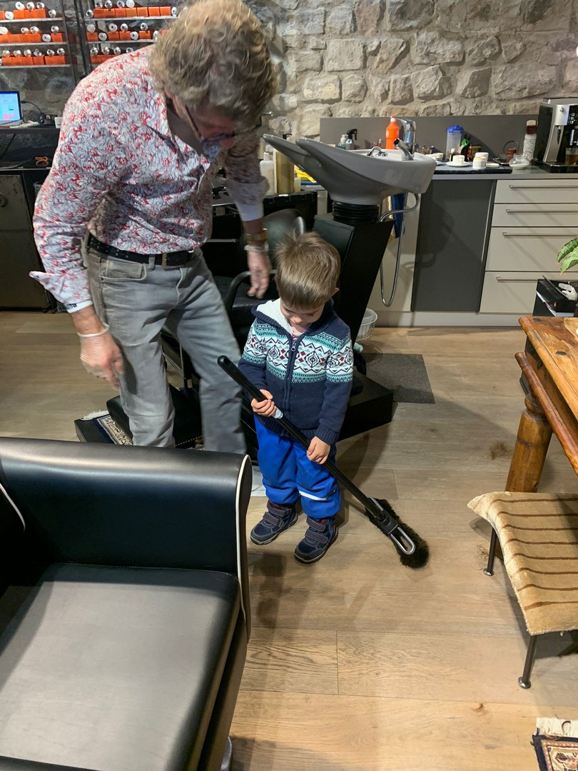 Little John Staub beim Grossonkel zum Haarschneiden