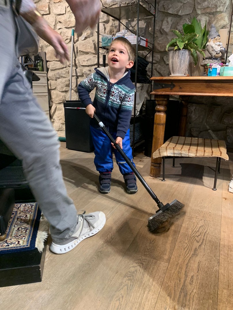 Little John Staub beim Grossonkel am Haarschneiden mit 4 Jahren und erste Haarwäsche
