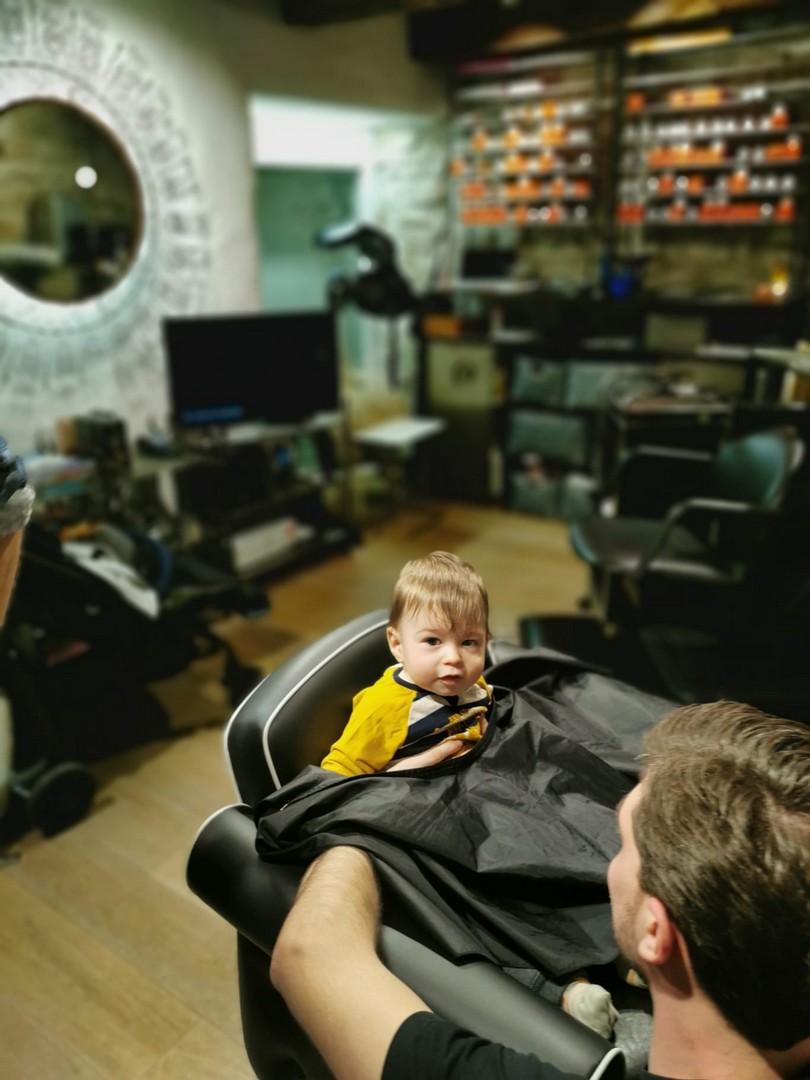 Little John Staub beim Grossonkel am Haarschneiden mit 8 Monaten